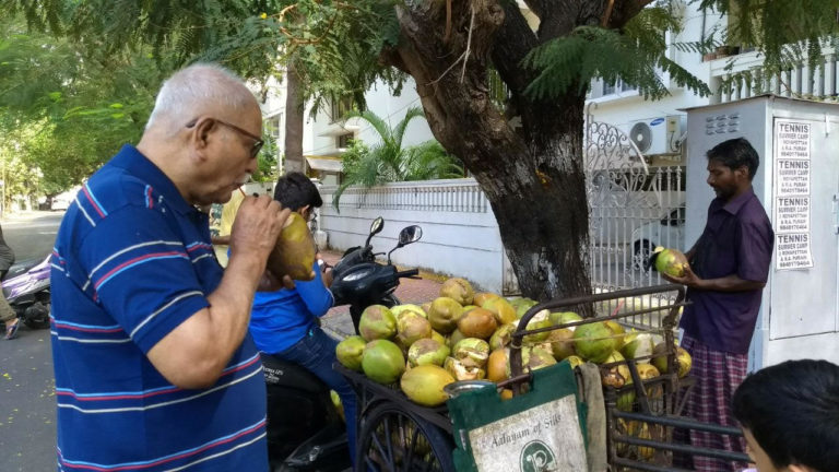 North Bengaluru, we identified a vendor of fresh coconut water called Mr Markandeya (we call him Mark for short). - Mark has a cart on four wheels that has a flat top measuring 4′ by 6′. (Capital cost of cart: Rs 25,000)